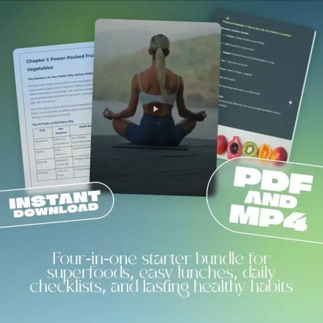 Ready to make healthy eating easier every day? Download Fuel Your Life: The Ultimate Healthy Eating Starter Bundle now, open the Everyday Superfoods Guide, plan smarter lunches with the Guide to Nutritious Diet Lunches, track wins with the Daily Healthy Food Power Checklist, and press play on the Body and Mind: Lasting Change Audio Course. Your simplest path to better meals—and better energy—starts today. This is a digital product; no physical item will be shipped.